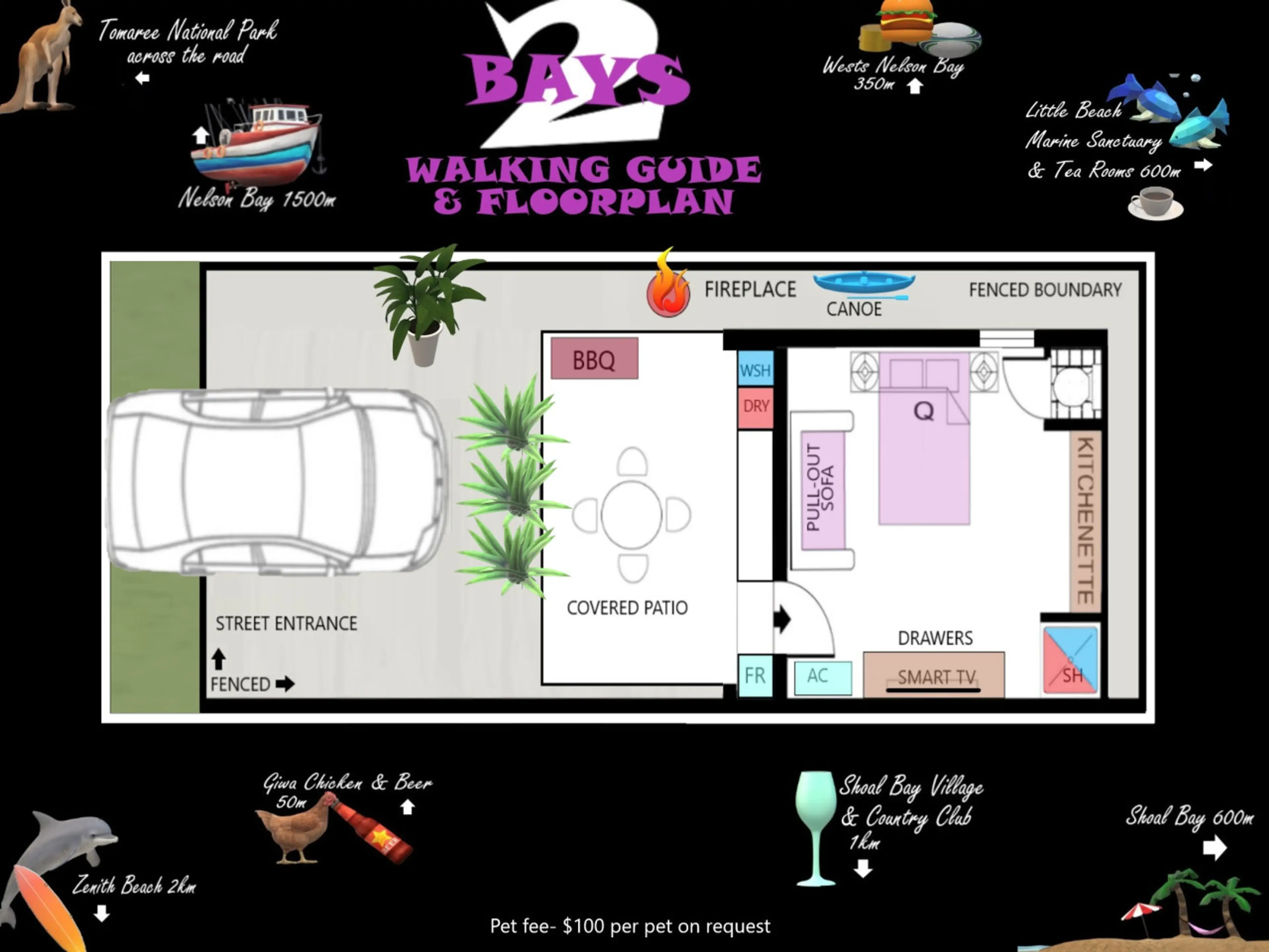 2Bays is a private & cute little studio perfectly located near Little Beach & Shoal Bay overlooking Tomaree National park with private street frontage. ★ “…really cute, comfy and private set up” ★ “…we walked down to Little Beach every day” - Sheltered courtyard - Fully fenced. Firepit - 2nd shower...